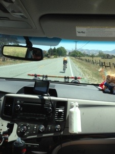 Mike had a front flat on a descent. He says, “That was exciting. I’m happy that I didn’t eat it.”